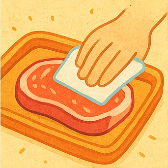 고기는 조리 30분 전 상온에 꺼내 두세요. 키친타월로 물기를 제거해 표면을 바짝 말리는 것이 중요합니다. - 시즈닝