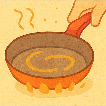 두꺼운 무쇠팬 또는 스테인리스 팬을 사용해 중강불로 2분 이상 예열하세요. 팬에서 연기가 살짝 날 때 고기를 올립니다. - 굽기