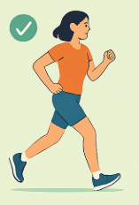 - 앞꿈치~중간발 착지 (뒤꿈치 착지 금지!)