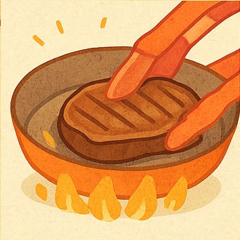 두꺼운 무쇠팬 또는 스테인리스 팬을 사용해 중강불로 2분 이상 예열하세요. 팬에서 연기가 살짝 날 때 고기를 올립니다. - 굽기